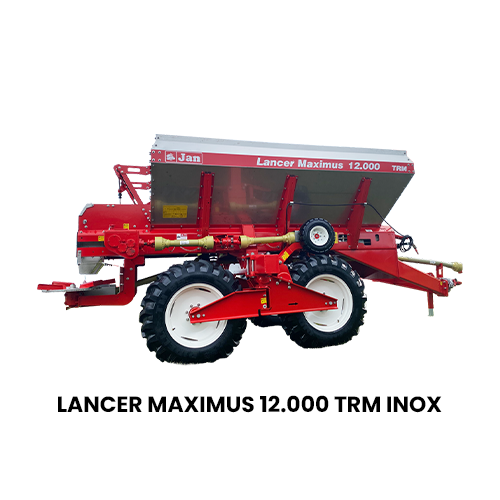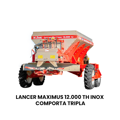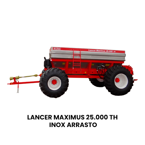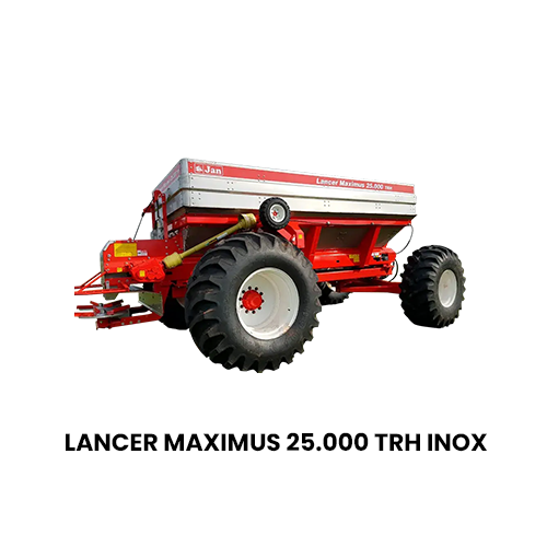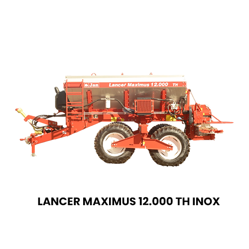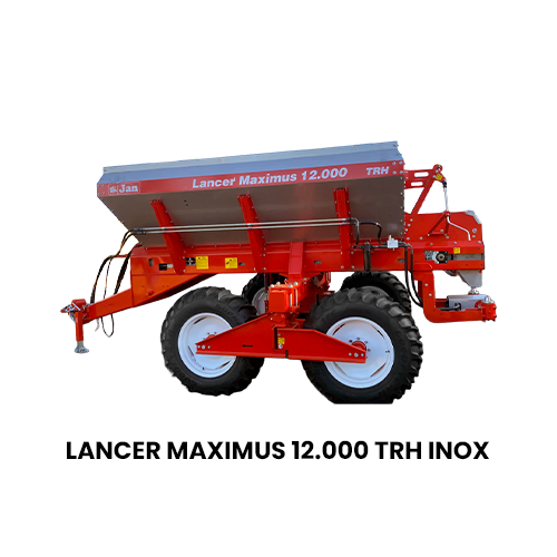 O Lancer Maximus 12.000 TH INOX da JAN distribui até 9 toneladas com acionamento hidráulico independente, bitola ajustável até 3,2 m e discos de até 36 m de alcance. Alta durabilidade e tecnologia para grandes propriedades.